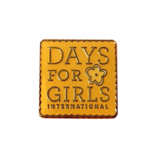Are you a DfG fan? Pin it! This 1" square lapel pin has a coated finish, vibrant colors and a scalloped edge. Did you ever wonder what those scallops are about? Picture a string of periods (like a string of pearls) woven together, adding up to more opportunity. Picture stitches adding up to more health around the globe. And now see it all as a stamp, delivering more freedom to women and girls everywhere, period. Do you see it? We do.